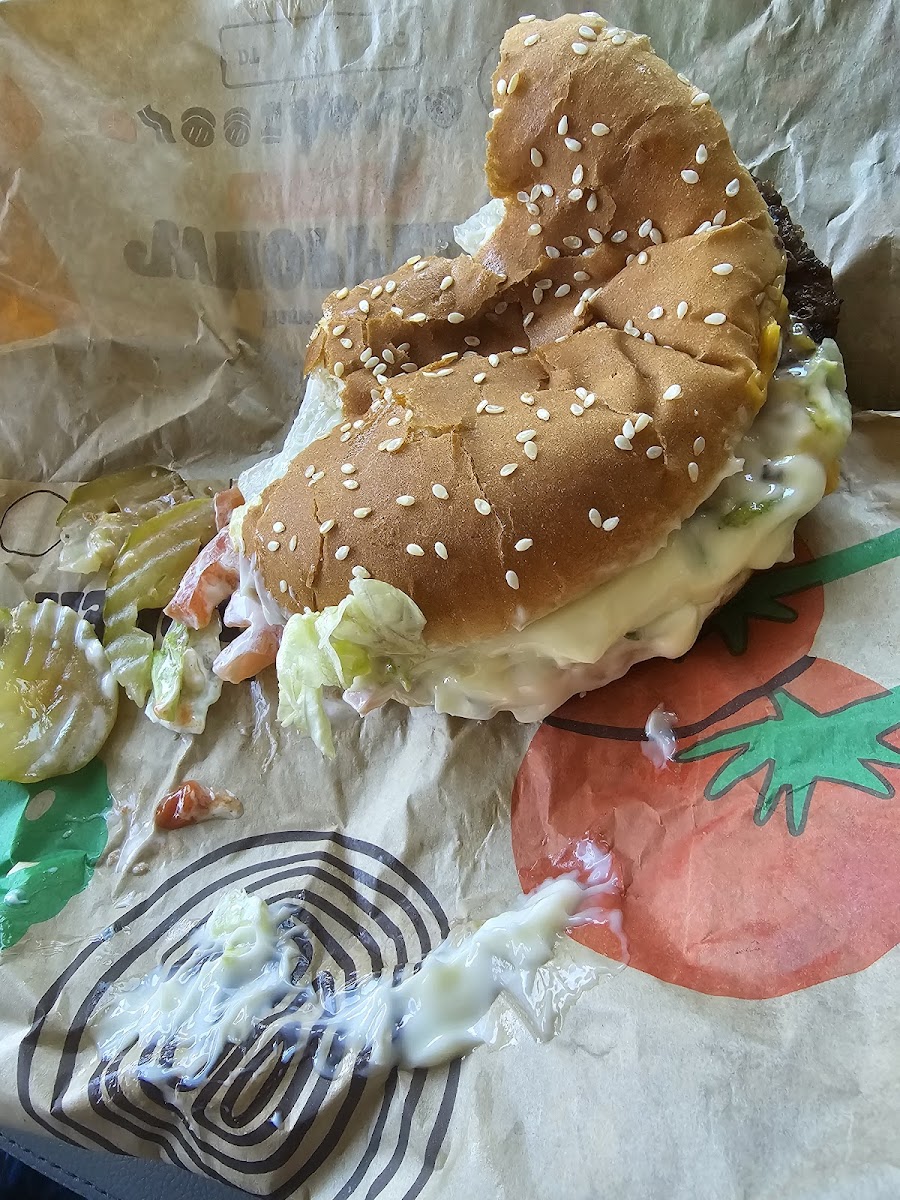 Because BK has easy vegetarian options, we stop at one on every road trip and plenty of times in between for a quick dinner on busy days. The quality of the impossible Whopper is hit or miss with most franchises overcooking them, a few to the point they are both charred and dry. This location gets it right. Their impossible Whopper soared to the top. It was hot, juicy, and flavorful. Better than any other location, including the initial testing. The staff was kind and clearly enjoyed interacting with customers, which took the experience over the top. Thanks for a really tasty meal, late at night, in the middle of a very long drive.